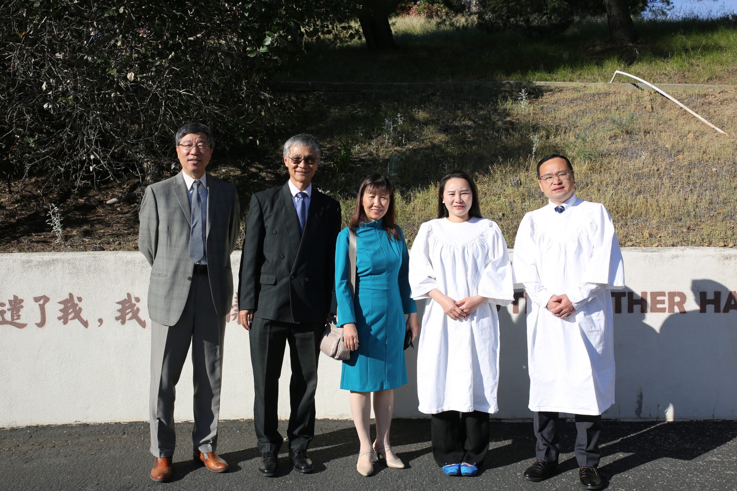 (11-16-2025 從左到右) 李明牧师,黄晓飞姐妹;王心皓姐妹;石少弟兄;马骥长老。